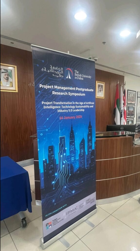 Al Geemi Contracting was proud to participate as a Gold Sponsor at the Project Management Postgraduate Research Symposium, hosted by The British University in Dubai (BUiD) on Saturday, 24th January 2026. The event brought together industry leaders, researchers, and academics to discuss the latest trends, research, and best practices in project management.