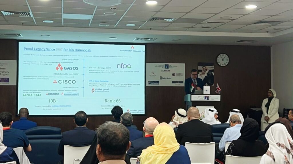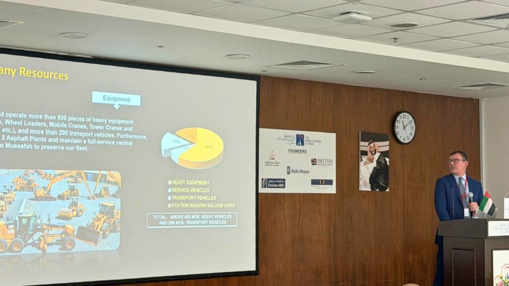 In addition to outlining the company’s longstanding role in the development of Abu Dhabi, Mr. Wesam Alghazali took the opportunity to highlight Al Geemi’s dedication to embracing innovation and technology as part of our ongoing efforts to redefine the construction industry. He provided a detailed overview of Al Geemi Contracting’s capabilities and vision, with a particular focus on our journey in digital transformation and AI adoption. He discussed how these cutting-edge technologies are reshaping project delivery, improving efficiency, and enhancing profitability—factors that are increasingly crucial in today’s competitive construction landscape.